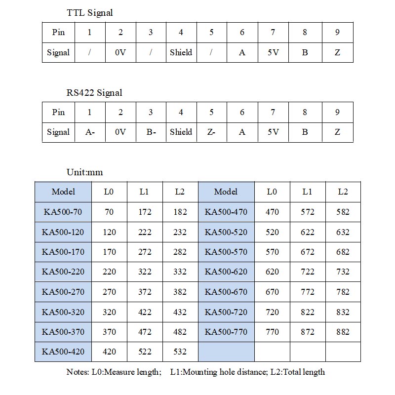 SINODRO KA500 70-770mm Slim Linear Encoder Technical Parameters:
