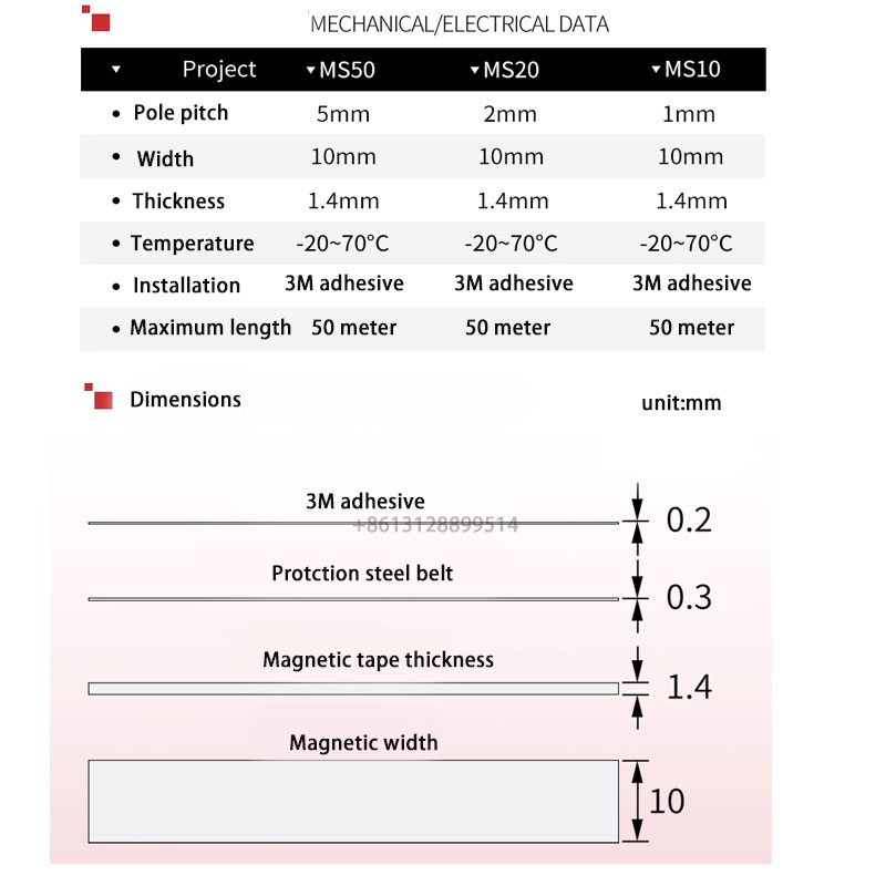 The magnetic tape consists of a tape with a pole pitch of tape and a protective stainless steel belt. It is flat and glued to a special aluminum case and equipped with a special protective steel belt to make the tape better oil-proof,waterproof, dustproof and life-saving. Small size readhead for small footprint and easy installation.