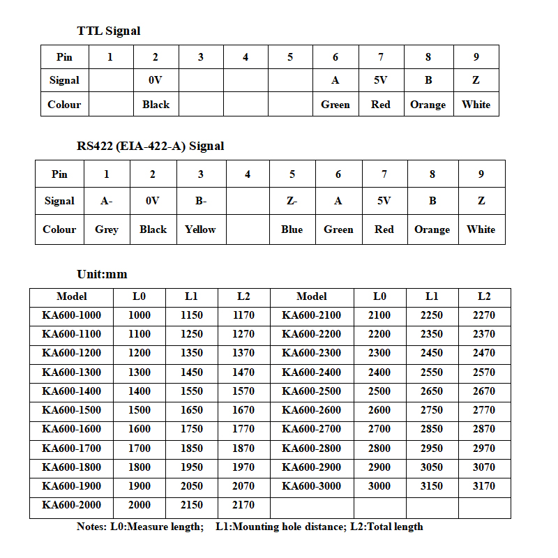 SINODRO KA600 Linear encoder technical parameters: